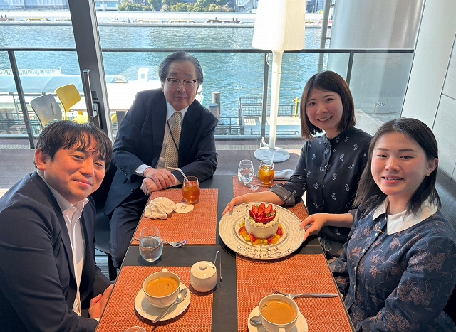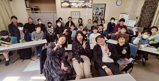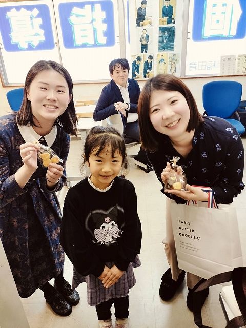 ▲お二人に手作りクッキーをプレゼントした教室生の一年生さんとも記念撮影