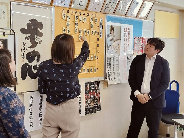 ▲詰将棋早解き対決、西山女流三冠VS両国将棋塾生