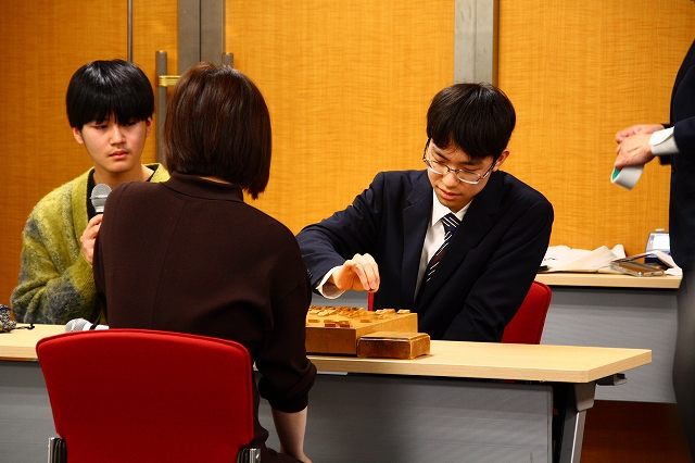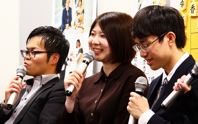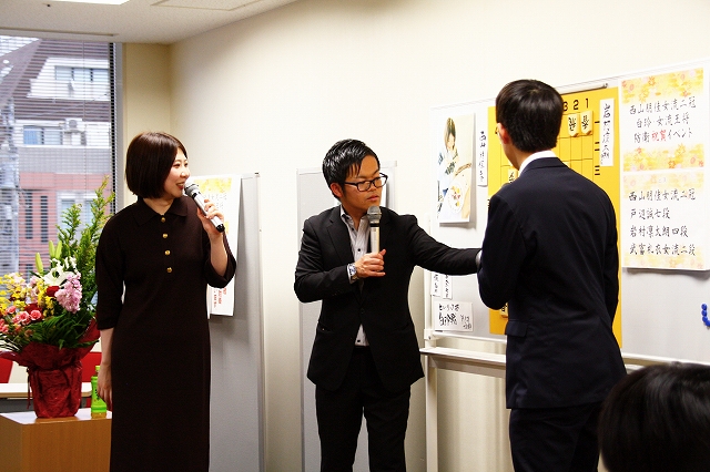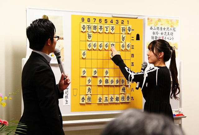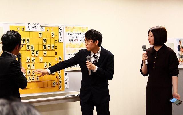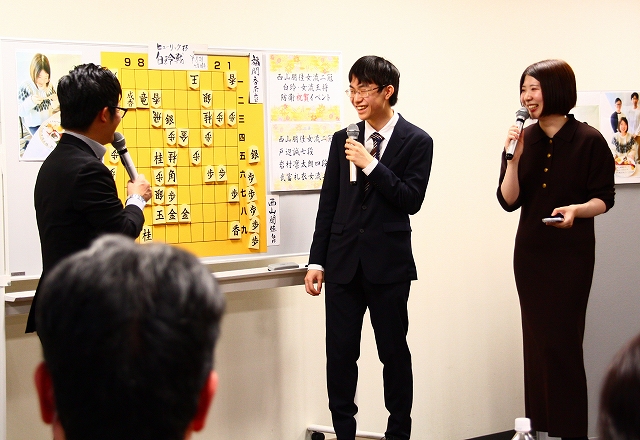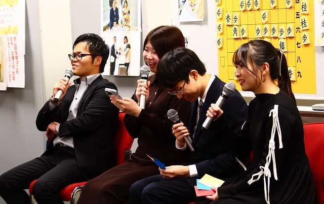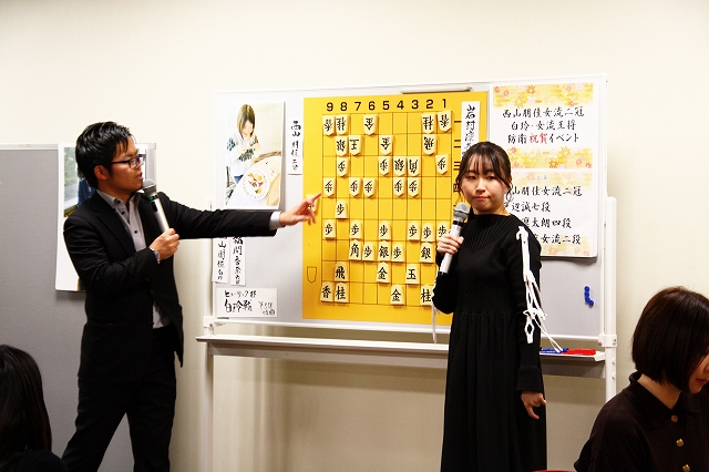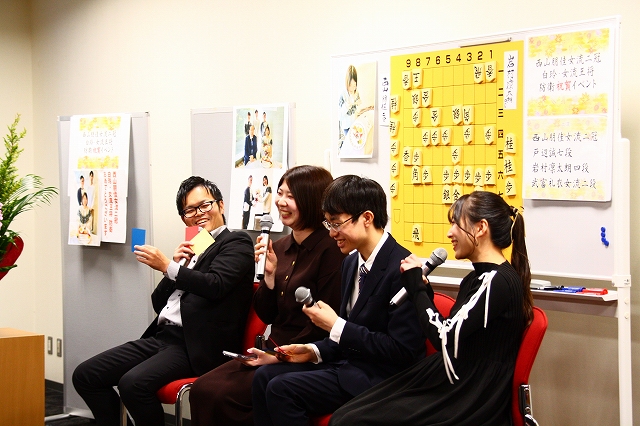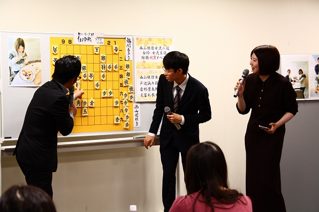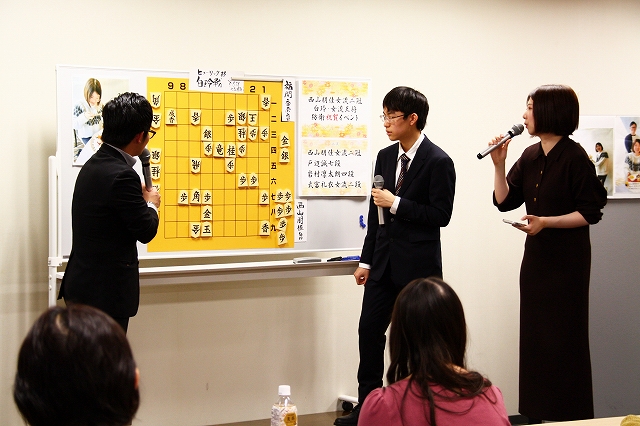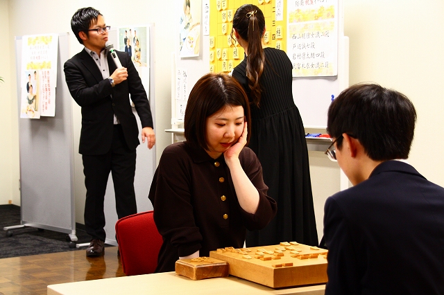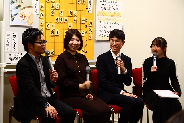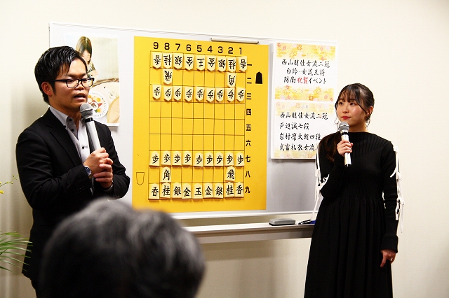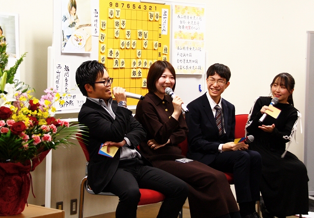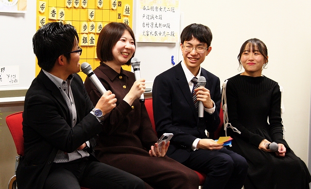 ▲武富礼衣女流二段の司会進行で解説トークショーイベントスタート