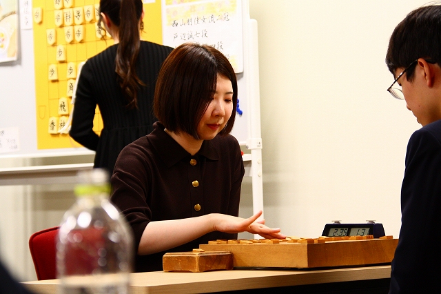 ▲「早指しエキシビションマッチ」岩村四段VS西山女流二冠
